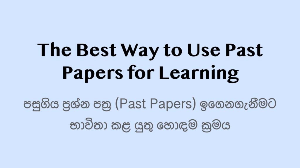 මෙම ලිපියෙන් පැහැදිලි කරන්නේ past papers ඉගෙනගැනීමේ මෙවලමක් ලෙස භාවිතා කරන ක්රමය, විද්යාත්මක සාධක සහ ප්රායෝගික පියවර සමඟ.