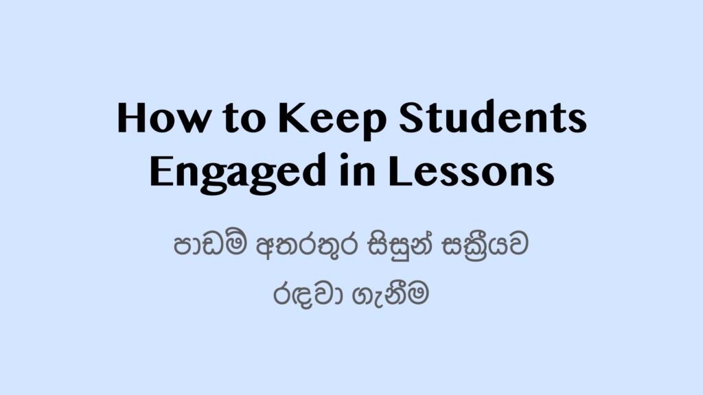 සිසුන් පාඩමට සක්රීයව සම්බන්ධ කරගෙන යාම (student engagement) යනු ගුරුවරයෙකුට ඇති වැදගත්ම අරමුණකි. සිසුන් සක්රීයව සම්බන්ධ වූ විට ඔවුන් වැඩි ලෙස ඉගෙන ගනී, විනය ගැටලු අඩුවේ, සහ අසීරු පාඩම්වලදී පවා අත්හැර නොයයි.